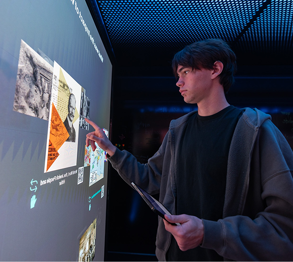 Spark Interactive brings Holocaust education to life by traveling to schools and communities throughout San Diego County. This state-of-the-art mobile museum combines digital artifacts, interactive technology, and guided facilitation to create a profound and engaging learning experience.